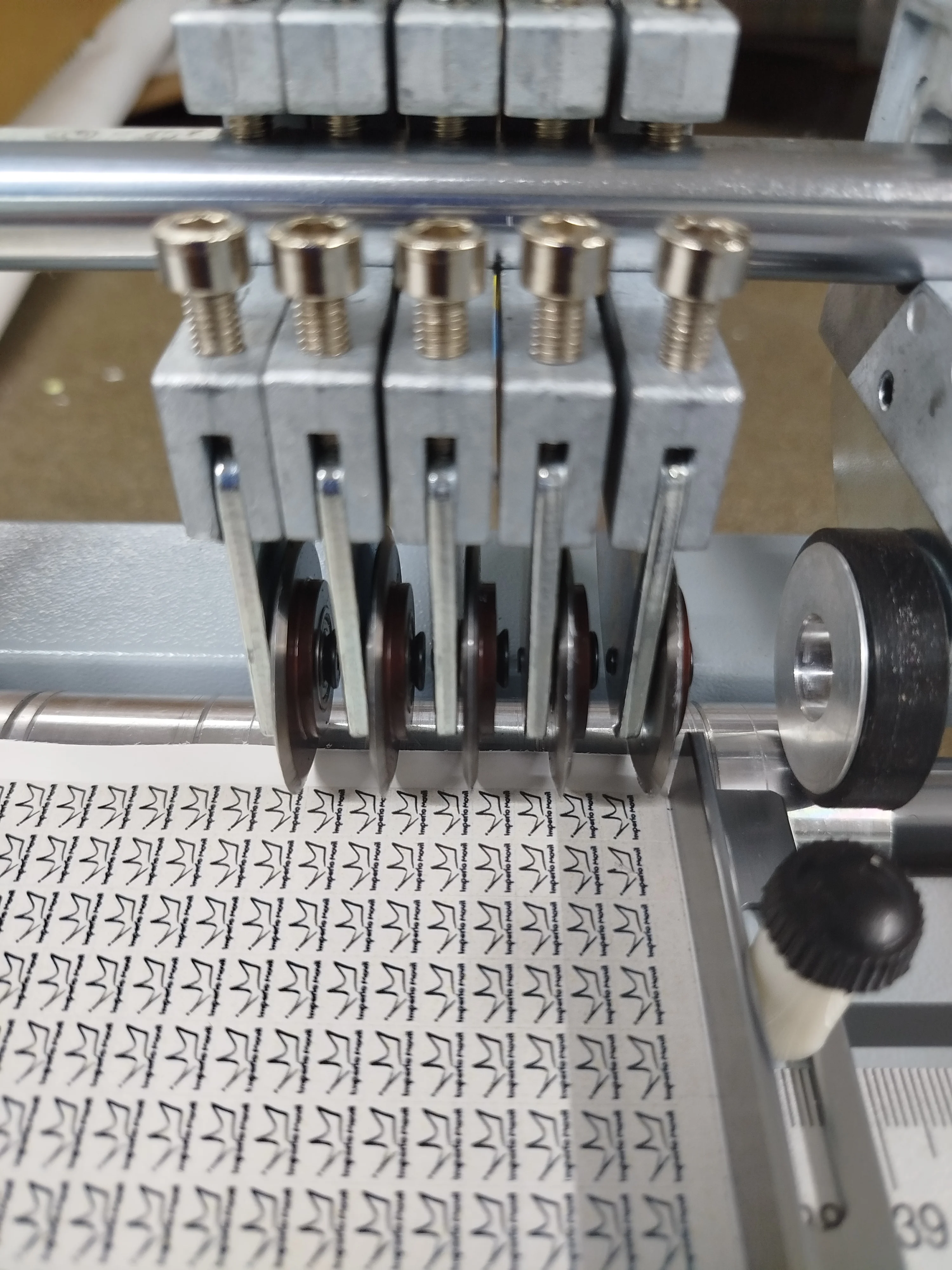la máquina está bien diseñada, se ve de buena manufactura y acabado pero no es precisa. si se requiere cortes muy precisos, falla. las guías de corte no corren a escuadra y es dispendioso ubicarlas correctamente para que el papel avance recto. Las cuchillas se ajustan pero durante el corte no se mantienen con el ajuste y toca reajustarlas varias veces. Al apretar el tornillo que fija la cuchilla, está se mueve y cambia de posición ligeramente, lo que hace lento el proceso, pues hay que repetirlo varias veces hasta que quede bien. cómo se aprecia en la imagen, estando las cuchillas posadas sobre el papel, arriba las distancias difieren, lo cual habla de impresicion en la elaboración de estas partes, pues los espacios deberían coincidir arriba y abajo. Prácticamente no me sirvió para lo que la compré.